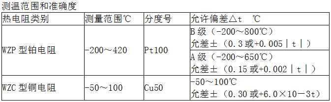 熱電阻類別測溫范圍℃分度號允許偏差△t℃