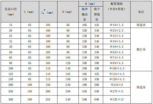 儀表口徑(mm)15、20、25、32、40、50、65、80、100、125、150、200、250、300