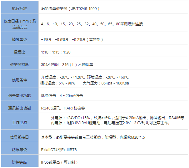 小 口 徑渦輪流量計是吸取了國內外流量儀表技術經過優化設計,具有結構簡單、輕巧、精度高、復現性好、反應靈敏,安裝維護使用方便等特點的新一代渦輪流量計,廣泛用于測量封閉管道中與不銹鋼1Cr18Ni9Ti、2Cr13及剛玉Al2O3、硬質合金不起腐蝕作用,且無纖維、顆粒等雜質,工作溫度下運動粘度小于5×10-6m2/s的液體,對于運動粘度大于5×10-6m2/s的液體,可對流量計進行實液標定后使用。若與具有特殊功能的顯示儀表配套,還可以進行定量控制、超量報警等,是流量計量和節能的理想儀表。